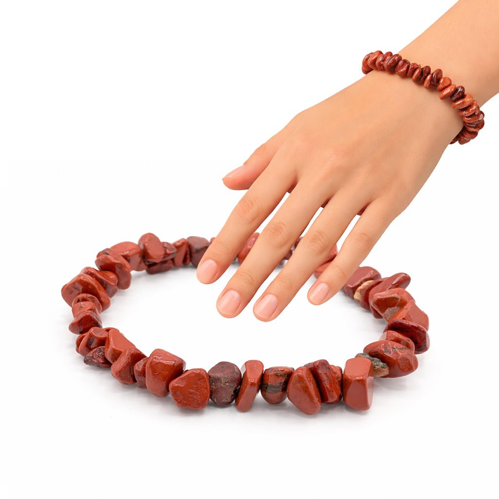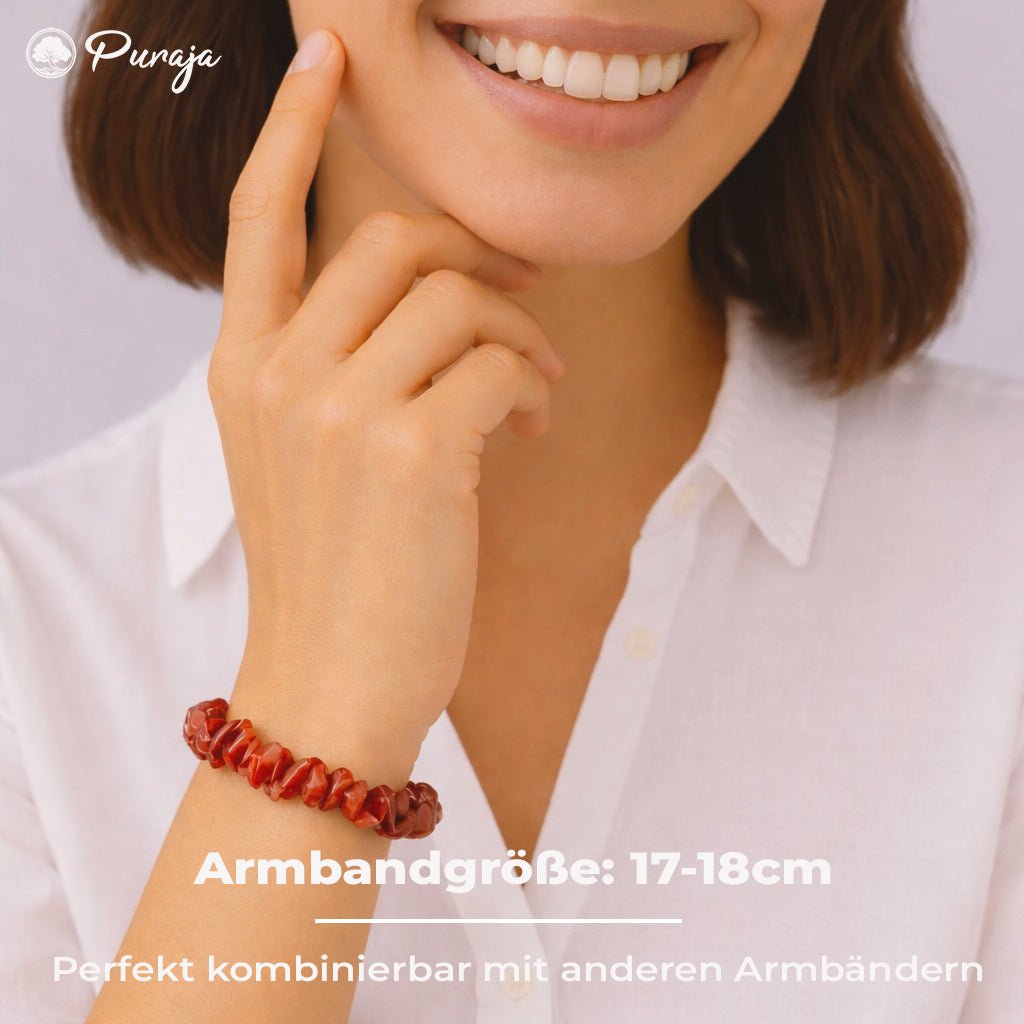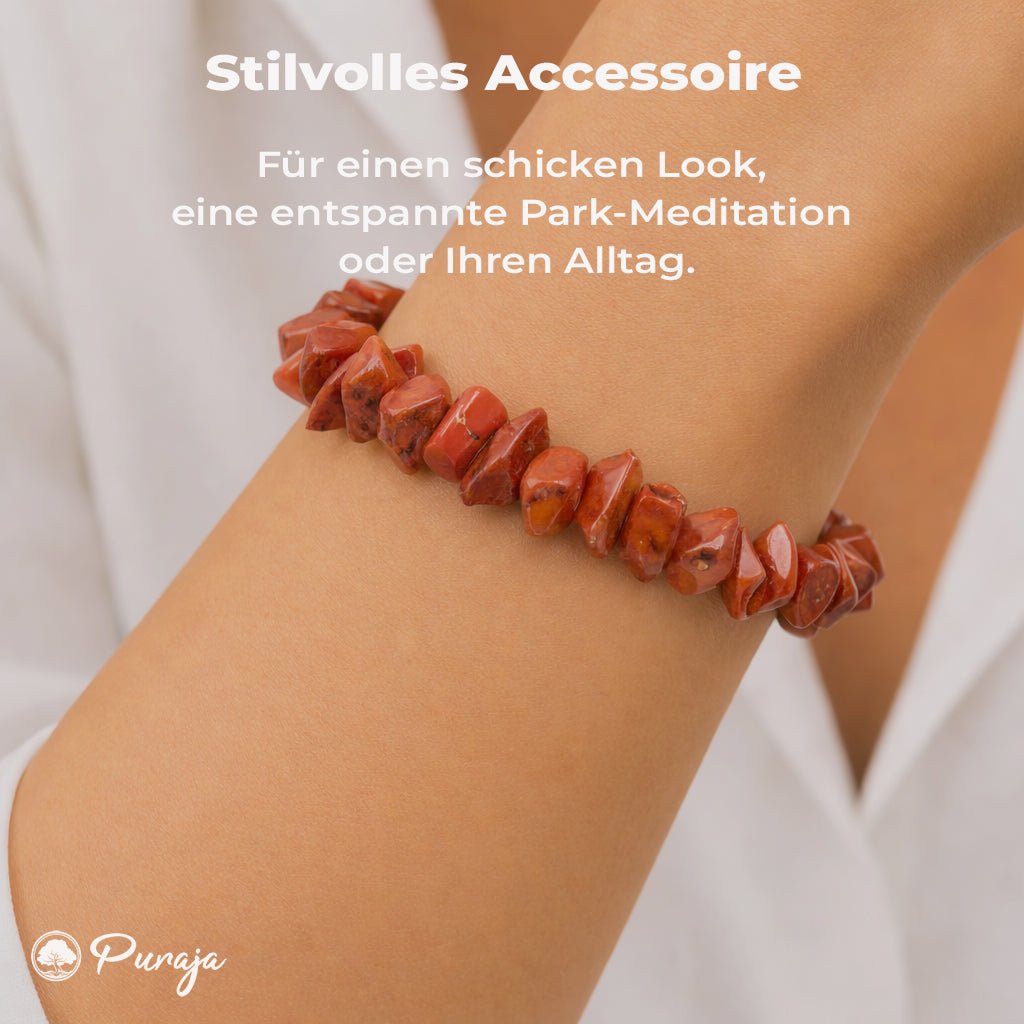 💎 NATÜRLICHES UNIKAT: Unser hochwertiges Rotes Jaspis Splitterarmband besteht aus 100% echtem Edelstein. Die Natur macht jeden Stein einzigartig und individuell - 100% roh und echt!