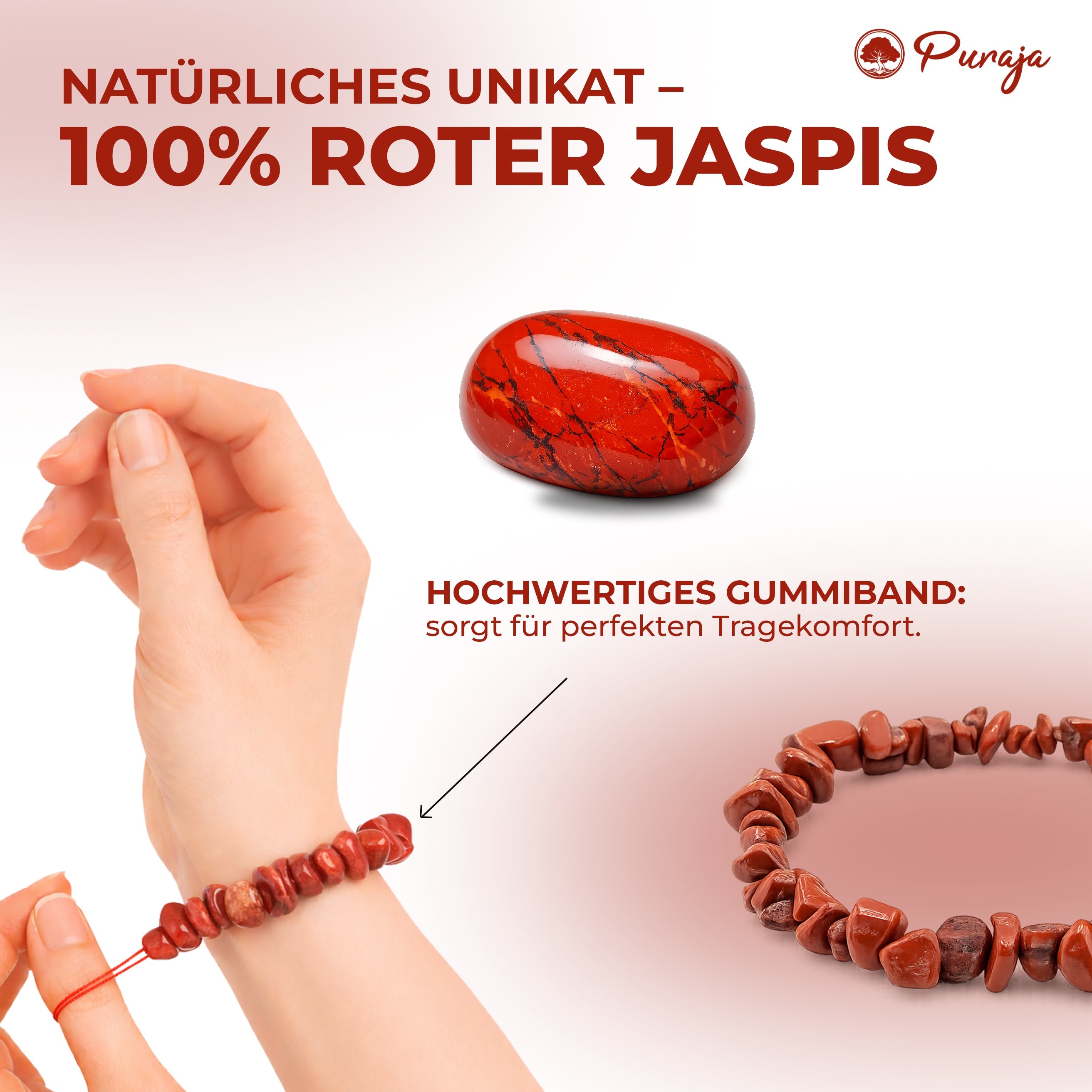 🪢HOCHWERTIGES BAND: Das dehnbare Gummiband bietet einen angenehmen Tragekomfort und passt sich somit perfekt an Ihr Handgelenk an. Unser Rotes Jaspis Armband besitzt eine Grundgröße von 17-18 cm.