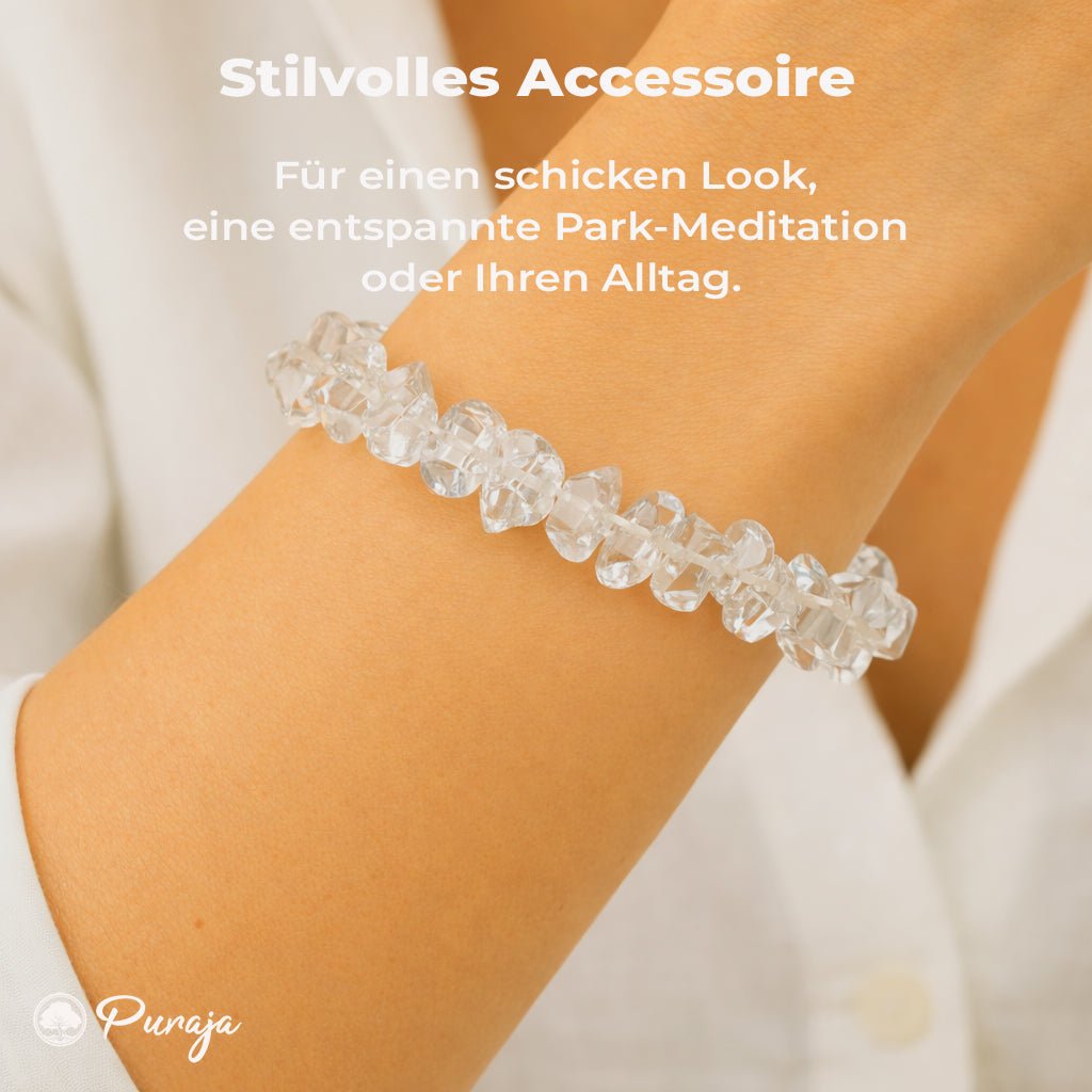 💎 NATÜRLICHES UNIKAT: Unser hochwertiges Bergkristall Splitterarmband besteht aus 100% echtem Edelstein. Die Natur macht jeden Stein einzigartig und individuell - 100% roh und echt!